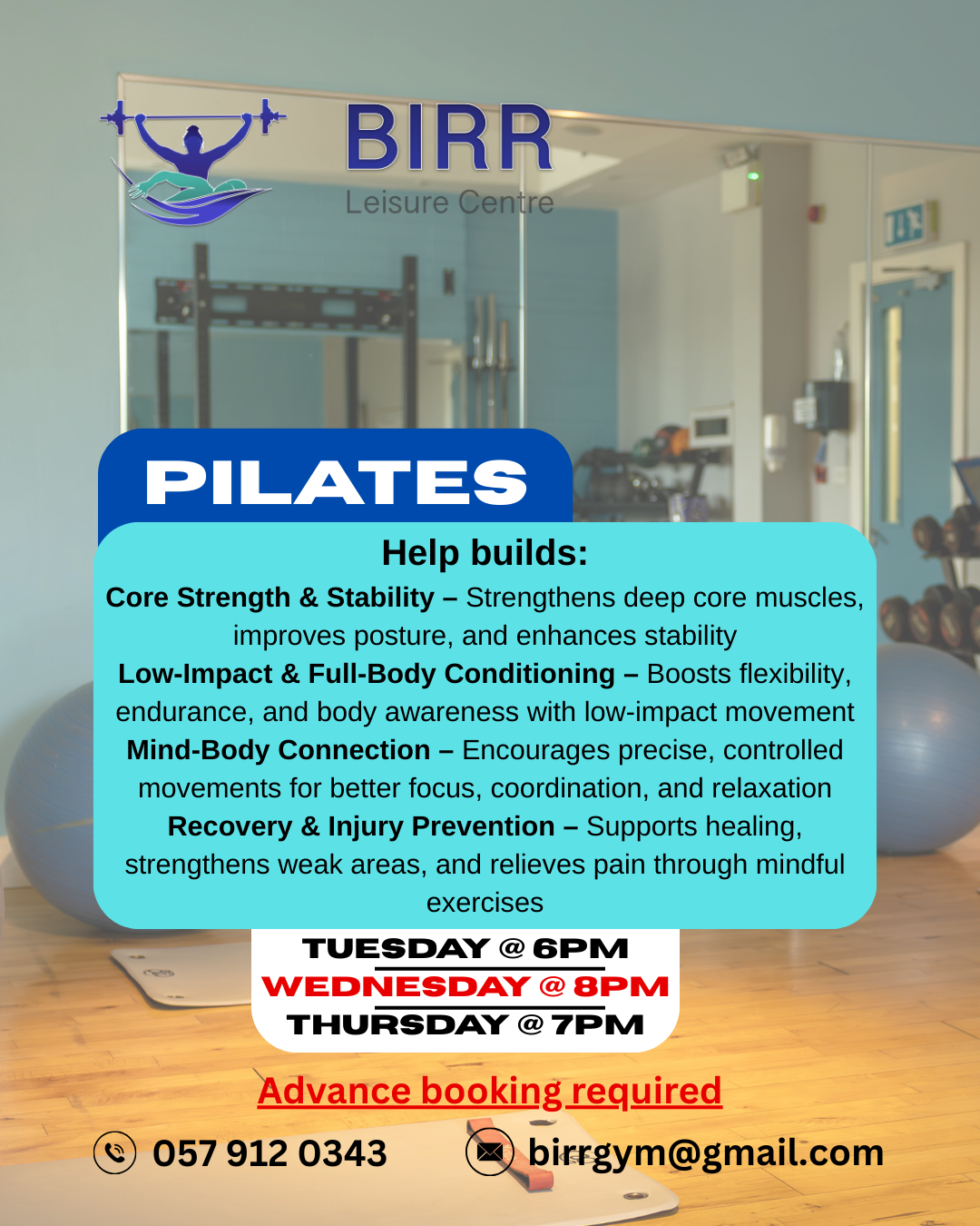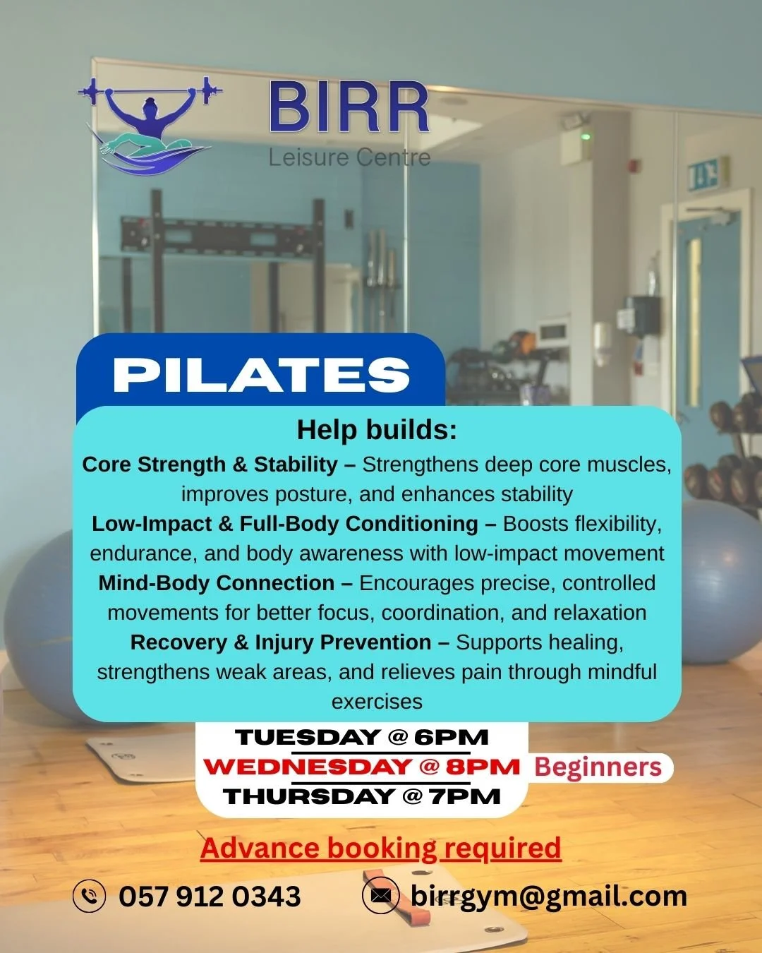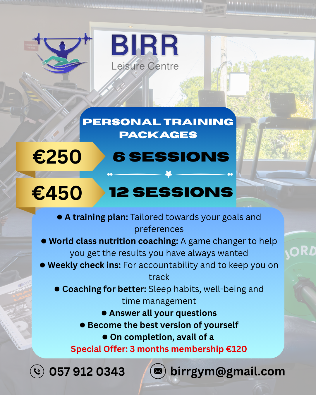 Birr Leisure Centre is a community owned facility, which is run by a voluntary board of directors. All income generated goes directly to the daily operation and maintenance of the leisure centre.
